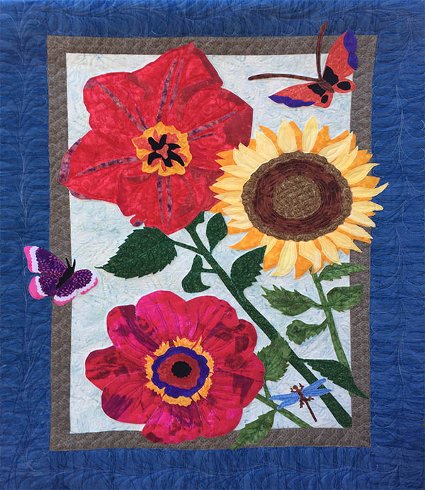 2. Lori’s Art Quilt: Bouquet of Flowers for Mom! was accepted into the Great Wisconsin Quilt Show 2020 Botanical Exhibit. Her quilt will be traveling with that exhibit until September of 2022.