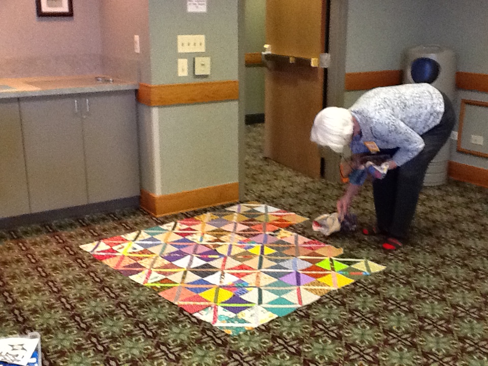 Above, Carol is laying out her quilts to determine just the right combination of blocks for each row!
