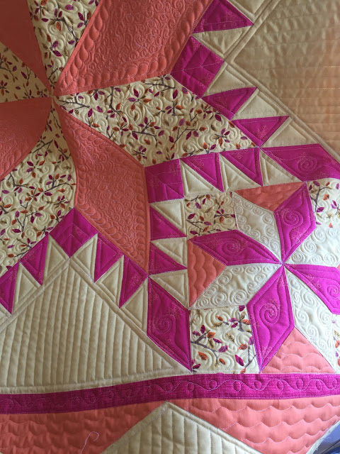 This evening I am creating the Faux Flange binding and will attach  it.  I will add more photos to show you the finished quilt once that is done.
