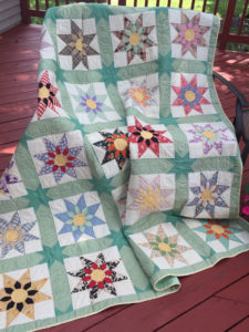 In honor of National Quilting Day, I wanted to share photos of just a few of the quilts that I created for customers in 2018. Each customer ‘s request is different. Some customers had specific fabrics in mind for their quilts; others gathered t-shirts or clothing from a child or loved one to use when making the quilt. This type of quilt is referred to as a “Memory quilt”. Other customers had quilt tops already pieced together and they just needed to have the top quilted together with backing fabric and batting. (See the Vintage quilt for an example of this.)