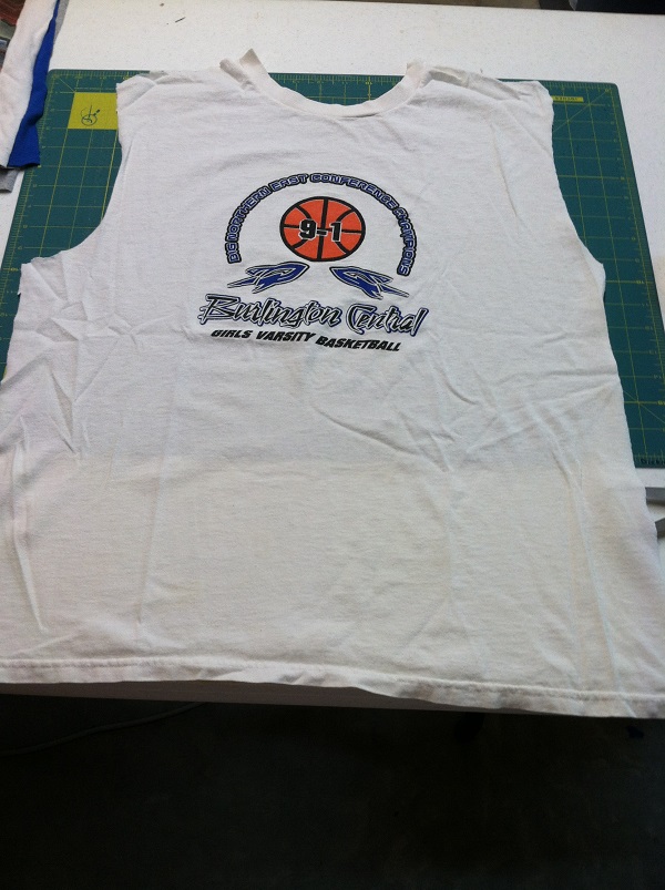 Step #2: To make each t-shirt block uniform, determine which t-shirt has the largest imprint, obtain its measurement and then cut every t-shirt block to be the exact same size.