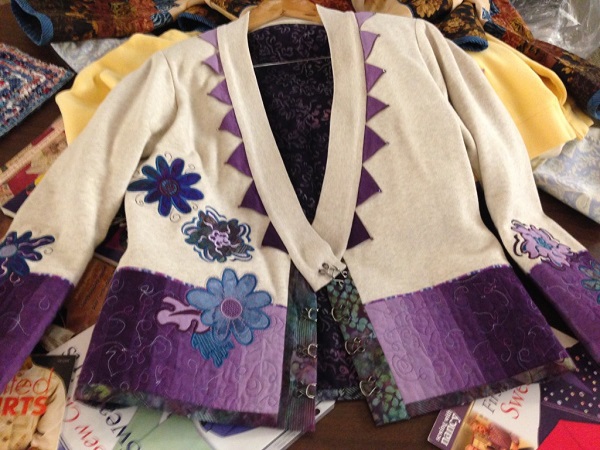Take a look at this beautiful quilted jacket…a piece of art! It was made by my dear friend of many, many years, Jeanette Bussard, who has created so many works of art in clothing and quilts which have truly been an inspiration to me!