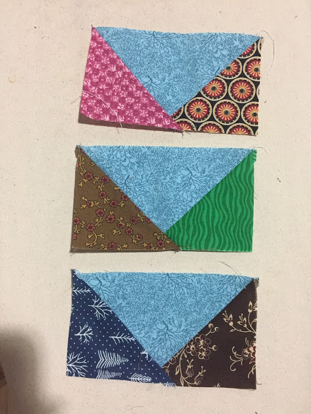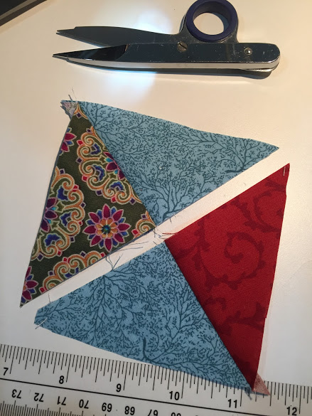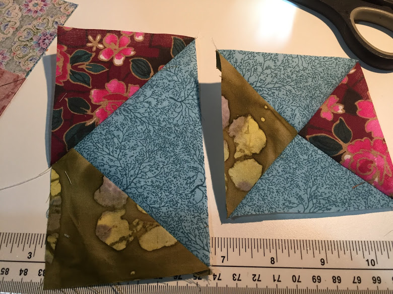 6. The photo below shows what the two halves look like! They will be sewn together to create a QST unit.