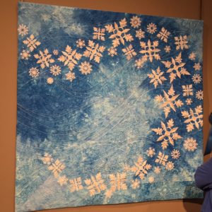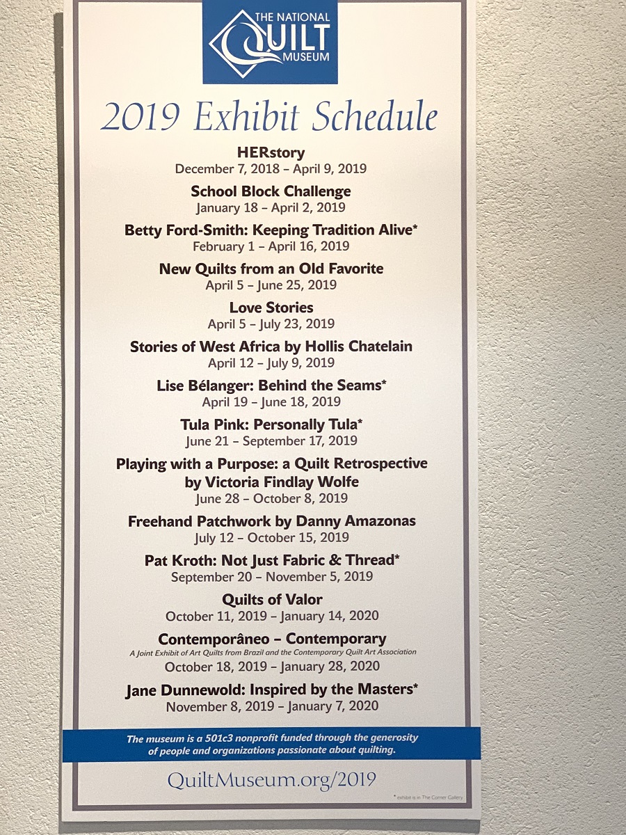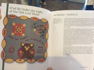 Then on Friday, the National Quilt Museum had a “Meet ‘n Greet” of the the artists who were winners and finalists in the 2019 New Block from an Old Favorite Contest. It was thrilling to see one of my quilts hanging on the walls of that Museum! The Staff of the Museum had created Books which included a 2-page spread for each of the 21 winners and finalists of the Contest. A photo of each of our quilts, along with the information about the quilt was written up in those books, which were available for purchase. Many people who came through the Museum went through the “meet ‘n greet’ line to have 9 of the artists from this contest sign their books.  It was fun to meet and talk to the folks who came through as well as to meet the gals who also had quilts in the contest.  I learned that our Quilts will travel with this Exhibit around the country for the next year and a half. I hope to see the exhibit in the Chicago and Madison area sometime soon!