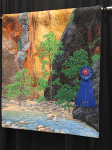 Here is one of Phyllis Campbell’s quilts (another fellow member of my Sinnissippi Quilt Guild). She had a number of quilts in the Show. She loves entering quilts in Quilt Challenges across the country and has won numerous awards also!