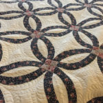 On my website, you’ll find a Tutorial on how to piece curved seams. The tutorial is called “Drunkard’s Path Block Patterns Made Easy” and it illustrates, step-by-step how to piece a curved seam, similar to the curved seams found in this Wedding Ring quilt.