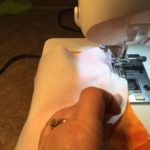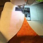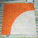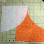 Below are a few photos from my tutorial…depicting how to lay the two curved pieces together to begin the seam; how to begin sewing the 1/4″ seam allowance, continuing down the curved seam to the end, and the finished curved block after sewing. NOTICE: I did not use pins for this process. It is a very easy technique. Check out the tutorial by following this link below:
